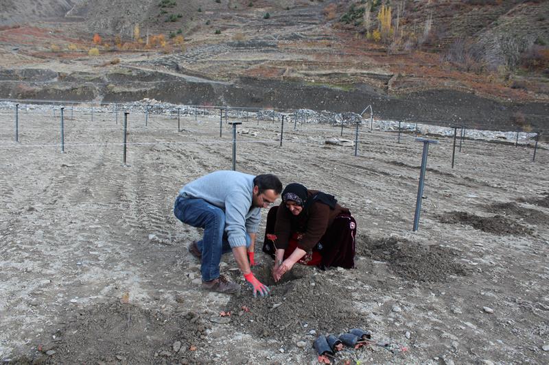 Hakkari Valiliği tarafından Köye Dönüş ve Rehabilitasyon Programı (KDRP) kapsamında Yüksek Telli Terbiye Sistemli Bağ Projesiyle adaptasyonu uygun çeşitlerden bağ bahçeleri hazırlandı.