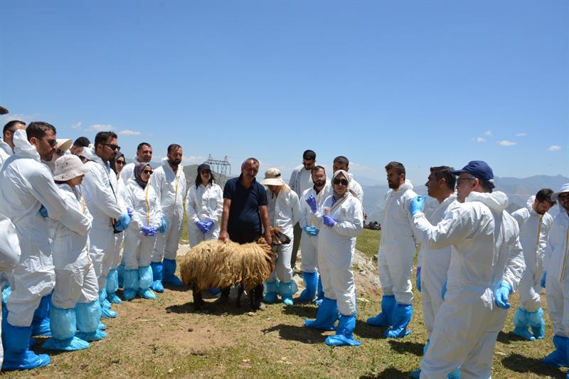 Tarım ve Orman Bakanlığımız Gıda ve Kontrol Genel Müdürlüğü tarafından olası bir Şap ve PPR salgınının etkin bir şekilde kontrol ve eradikasyonunun sağlanması amacıyla Hakkari İlimizde devam eden “Şap ve Koyun Keçi Vebası Hastalığı Tam Zamanlı Saha Tatbikatı ve Salgın Yönetimi Eğitimi" kapsamında 3.300 rakımlı Berçelan yaylasında on ilden gelen Veteriner Hekimlerin katılımı ile tam saha tatbikatı gerçekleştirildi.